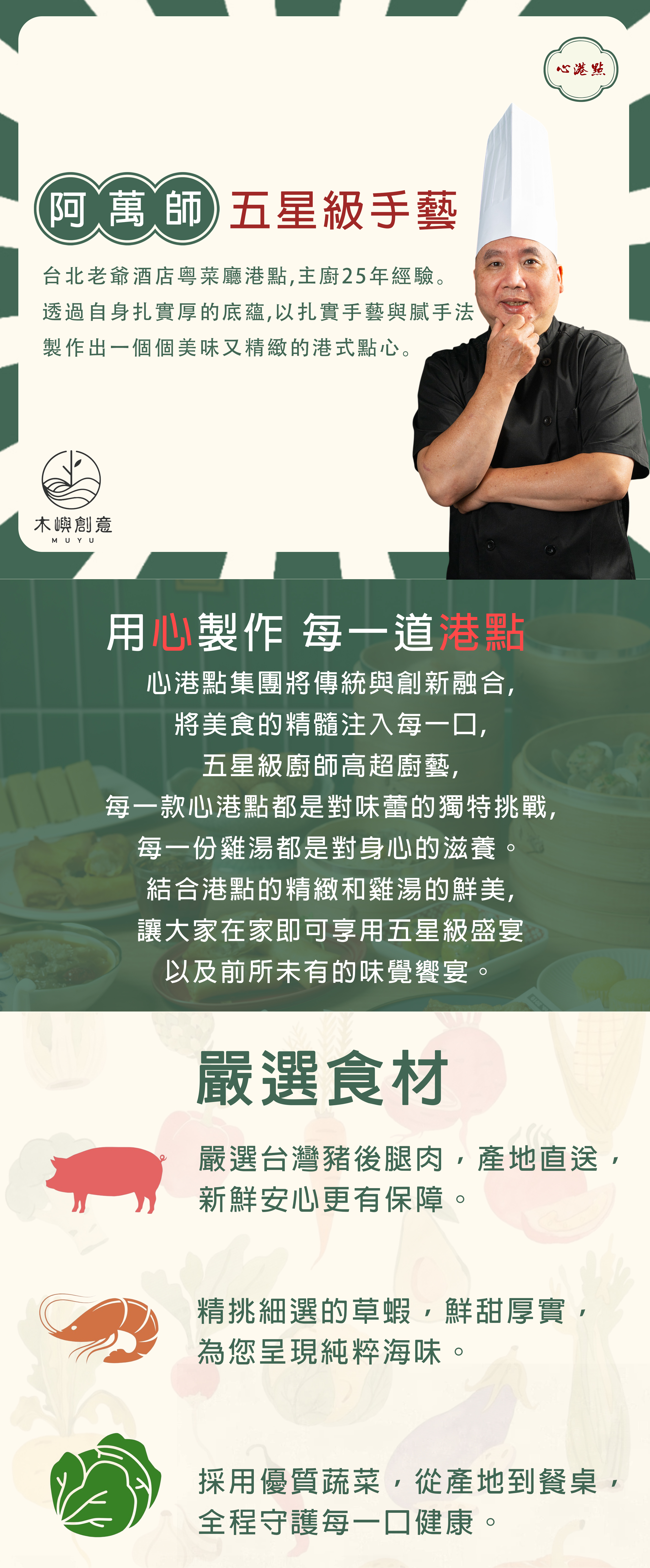 心港點集團將傳統與創新融合,將美食的精髓注入每一口,五星級廚師超高廚藝,每一款心港點都是對味蕾的獨特挑戰。