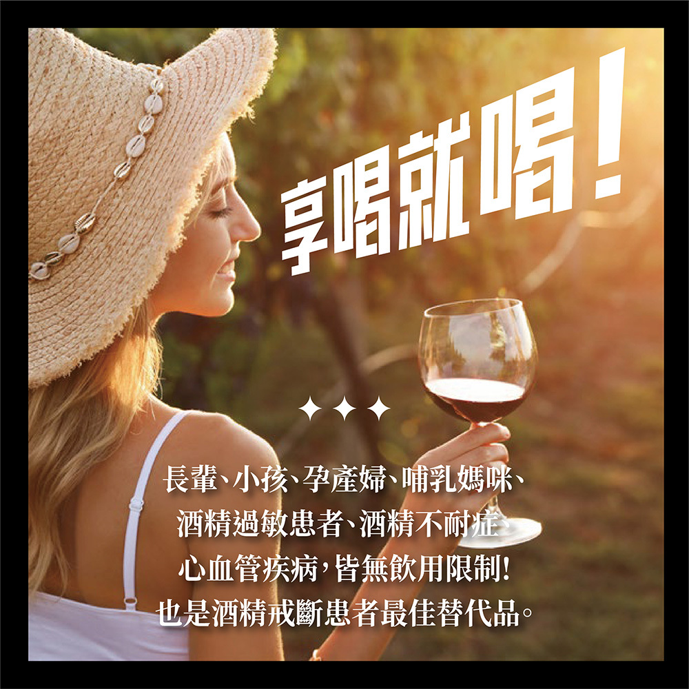 孕產婦/小朋友/酒精過敏患者/酒精不耐症等,皆無飲用限制,是一款非常適合海鮮及及搭配甜點飲品。