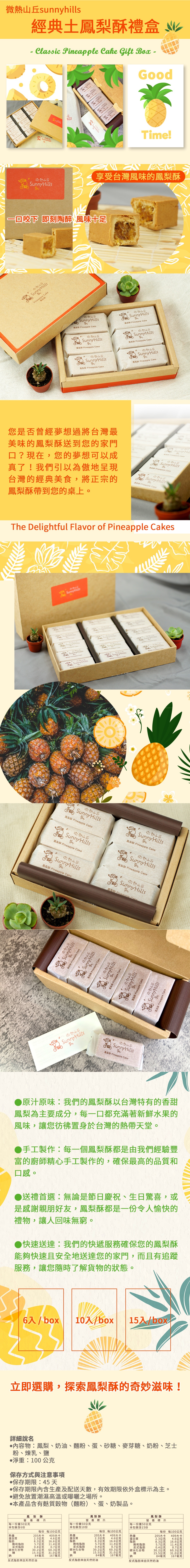 以濃縮陽光滋味的鳳梨醬為基底,佐酸甜合宜的季節調味,搭配健康飼養的鮮力蛋,天然奶油和精選麵粉,完美呈現微熱山丘反璞歸真之作。
